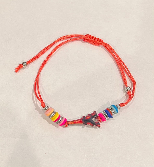 Girl Handmade String Bracelet Eiffel Tower Pendant - Orange