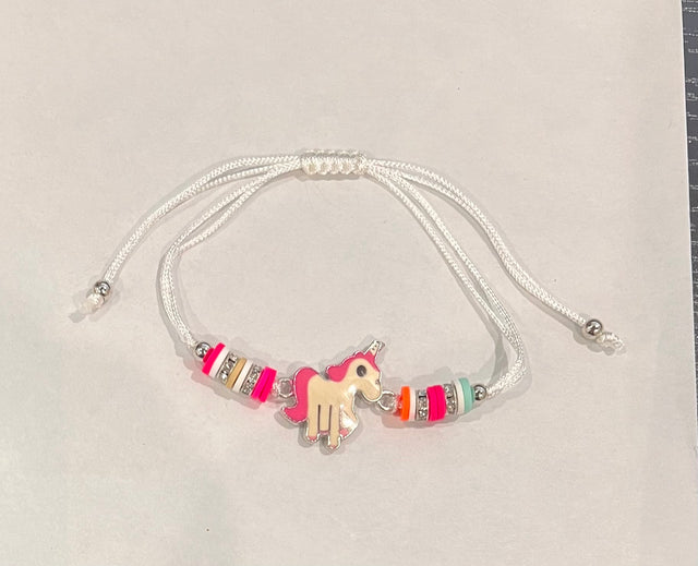 Girl Handmade String Bracelet Unicorn Pendant - White