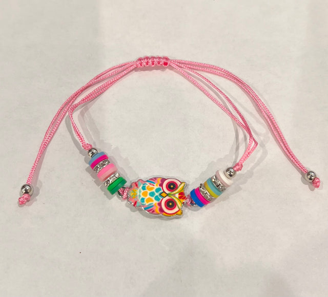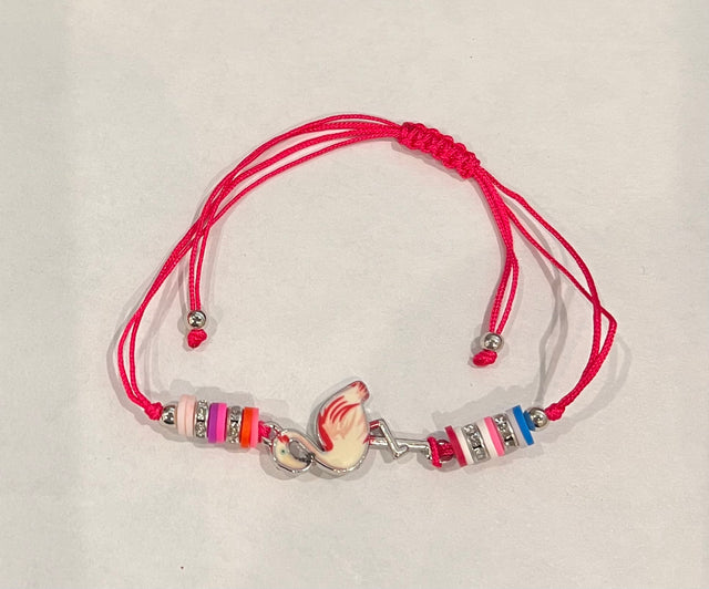 Girl Handmade String Bracelet Flamingo Pendant - Hot Pink