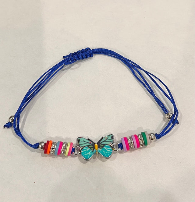 Girl Handmade String Bracelet Butterfly Pendant - Blue