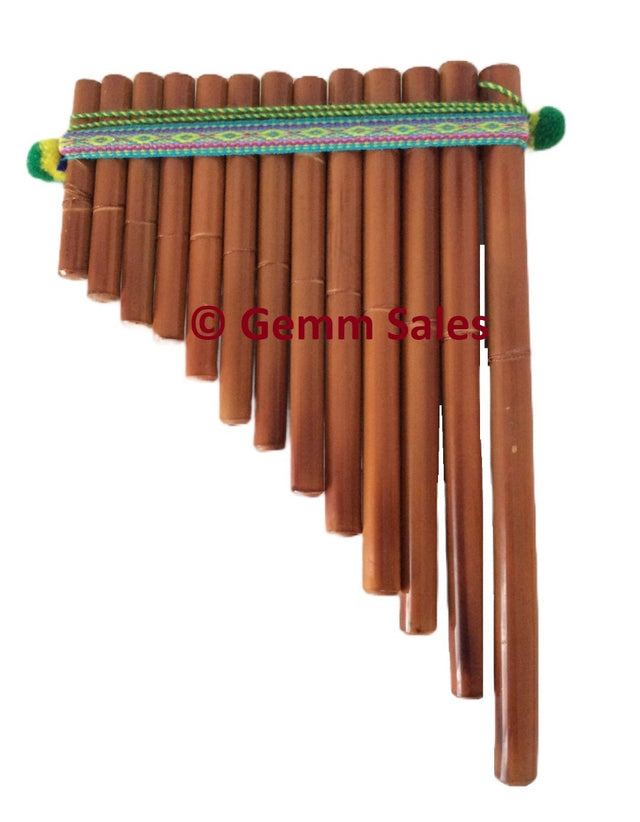 Authentic Ecuador Bamboo Pan Pipe, 13 Canes, Curved