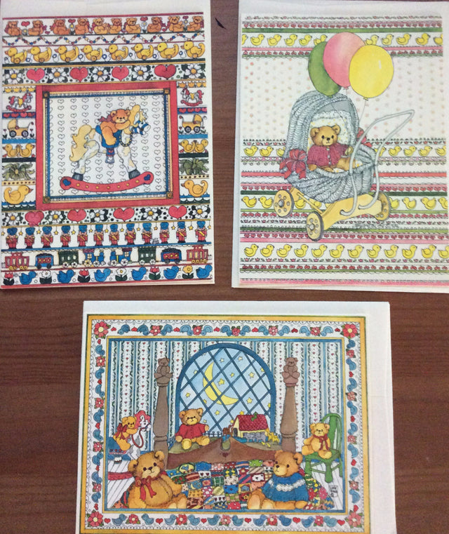 Lucy and Me Teddy Bear Note Cards, Vintage 1980's, Lucy and Me, Inc. Set of 3 Blank Note Cards