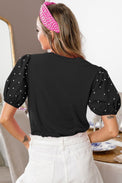 - The puff sleeves make this dressy top more elegant.