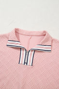 Light Pink Contrast Striped Collar Patchwork Textured Half Sleeve Blouse