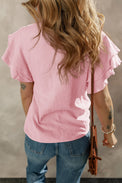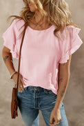 Light Pink Crinkled Cotton Gauze Ruffle Sleeve Blouse