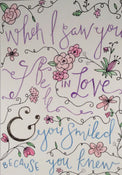 "When I saw you I fell in Love & you smiled Because you know"