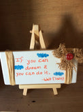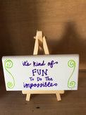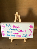 Inspirational quote handwritten on tile.