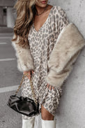 Gray Leopard Print V Neck Loose Fit Mini Dress