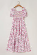 White Frilly Shirred Bodice Tiered Floral Maxi Dress