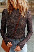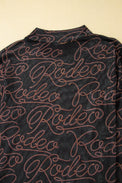 Black Western Rodeo Printed Mock Neck Long Sleeve Mesh Top