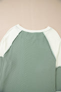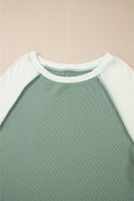 Mint Green Ribbed Colorblock Patchwork Raglan Long Sleeve Top