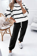 Black Stripe Drop Shoulder Pullover and Jogger Pants Set