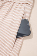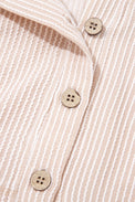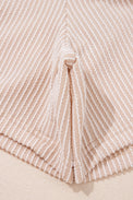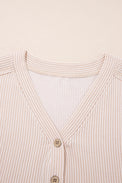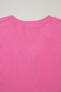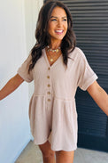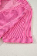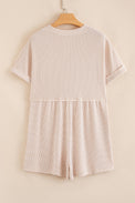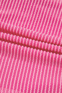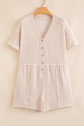Bright Pink Spiral Ribbed Short Sleeve V Neck Buttoned Romper with Pocket