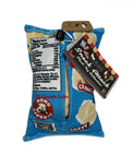 A fun Snack Attack for your pup, this dog toy features maximum crinkles, squeakers and chips on a bungee for added entertainment.