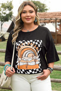 Black Checkerd DESERT DREAMS Printed Ripped Plus Size Tee