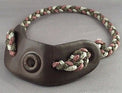 The sling has a leather mounting strap 4 3/8" and the wrist strap is made of durable braided cord 22" long.
