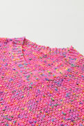 Dark Pink Colorful Spots Knitted V Neck Casual Sweater