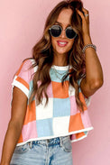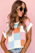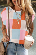Grapefruit Orange Color Block Cap Sleeve Sweater