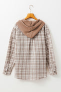 Khaki Checkered Print Loose Fit Buttoned Hooded Shacket