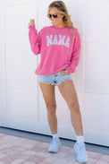 • A casual pullover sweatshirt adorned with floral MAMA embroidery on the front.