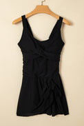 Black Adjustable Straps Cutout Ruched Knot Slit One Piece Swim Dress