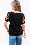 Black Flora Lace Patchwork Crew Neck T Shirt