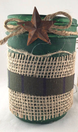 Mason Jar Flower Vase, Wide Mouth Mason Jar, Rustic Decor, Country Jar Vase, Primitive Metal Star