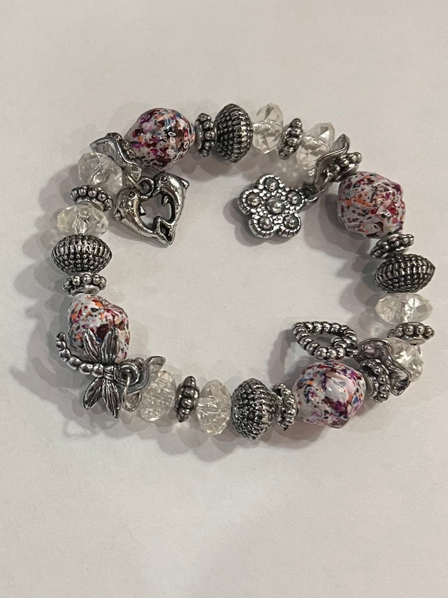 Woman's Bracelet with Summer Charms - Watercolor Splatter Beads