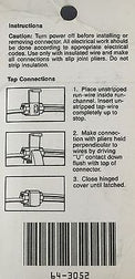 Connecting wires in simple with the tap-in squeeze connectors. It’s easy to use: insert the unstripped wire inside the connector, squeeze the contact down flush with the connector and snap the hinged cover in place.