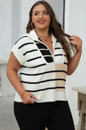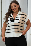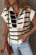 Black Stripe Colorblock Quarter Zip Collar Sweater Vest