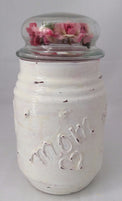 Candy Jar for Mom, Glass Lid with Flowers, Hand-painted, Distressed Finish