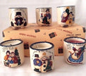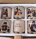 Christmas Candle Small Crock Set, Hand Painted Christmas Snowman, Set of 6