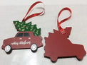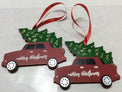 Christmas Ornament Red Car with Christmas Tree Set of 2