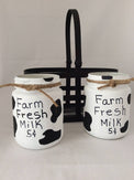 Small Glass Jars have been hand painted in White and with Cow Spots.