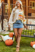 DEAR-LOVER Beige Oversized Colorblock V Neck Hooded Sweater