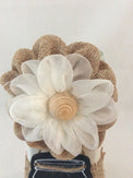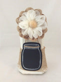 Decorated with Beautiful Burlap Flower and a Mason Jar Tag painted with chalk paint.