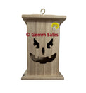Halloween Lantern Lights Up Unfinished Wood - Jack-O-Lantern Evil Face.