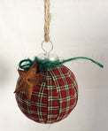 Handwrapped Christmas Ornaments in Homespun Farmhouse Fabric