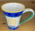 Kamora Ceramic Mug Yellow Spiral Swirl, Blue and Yellow Stars