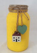 Mason Jar Vase, Country Yellow with Twine & Salt Shaker House