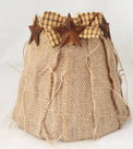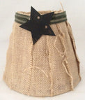 Hand wrapped Lamp Shade with Burlap and decorated with metal primitive stars and fabric.