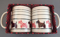 Mugs have the Scottish Terriers printed all around the bottom and stripes all around the top half.