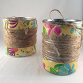 Summer Flower Vase Tin Can, Hand Wrapped in Twine