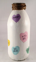 Valentine's Day Vase, hand painted Candy Hearts, Glass Bottle