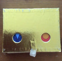 Box has a Red Velvet finish and Gold color Trim, comes with Ribbon pull.