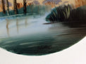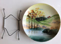 Nice decorative plate with tiny housed overlooking fields, trees and river.