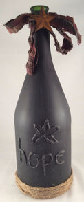 Wine Bottle Vase, Primitive Decor Vase, Hand Crafted Words Faith, Hope & Love, Distressed Finish