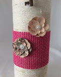 Wine Bottle Vase, Shabby Chic, Paper Flowers and Skeleton keys, Handwrapped with Twine